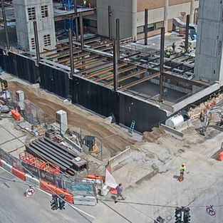 The structural system is comprised of a steel superstructure with composite slab system, and concrete shear walls. The building is founded on auger-cast pile foundations.